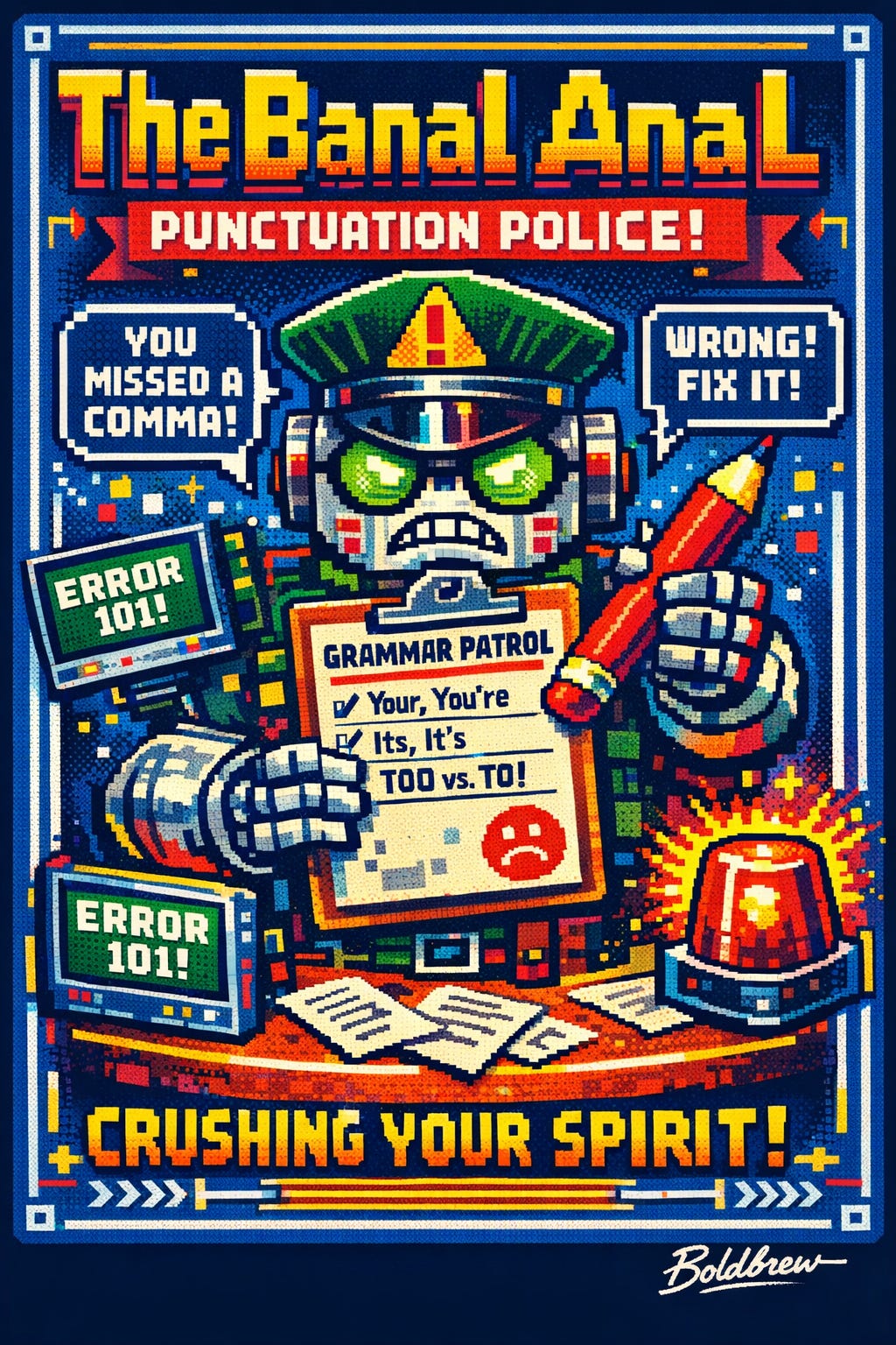 Language is alive. Voice is alive. Writing isn’t a tax audit. Yes, clarity matters. Yes, craft matters. I love a strong sentence. I love a polished paragraph. But the Banal Anal doesn’t serve language. They use grammar like a flyswatter because they don’t have the nerve, depth, or range to meet the actual idea on the page.